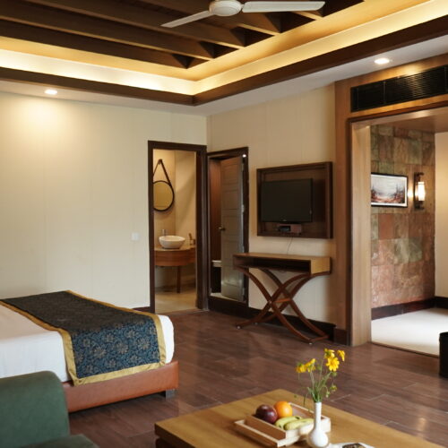 Rs.28,000.00 per night View room detailsThe Royal Suite, spread across 1400 sq. ft., features two master bedrooms, a spacious living area, and a panoramic resort view. Designed for large families, it offers the perfect blend of exclusivity, comfort, and luxury.
